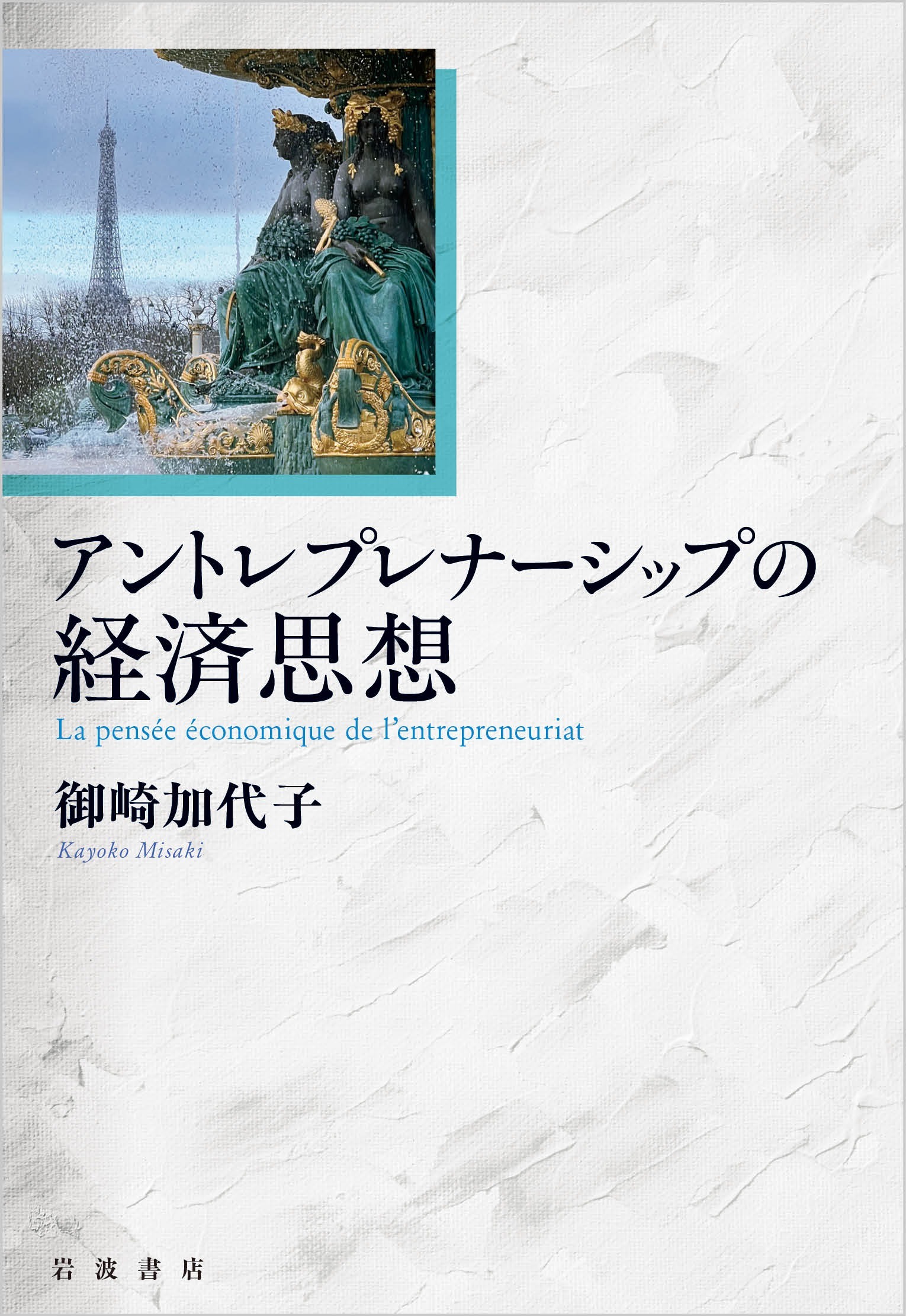 2026年3月18日、御崎加代子著『アントレプレナーシップの経済思想』(岩波書店)が刊行されました。 装丁に使用した写真は、2024年12月に資料調査でパリを訪れた際、コンコルド広場で撮影したものです。海の噴水(la fontaine des Mers)越しにエッフェル塔を望む構図になっています。コンコルド広場は、1755年に「ルイ15世広場」として整えられ、その後「革命広場」と改称されました。よく知られているとおり、この場所ではルイ16世やマリー・アントワネットをはじめ多くの人々が、ギロチンにより処刑されています。その後、広場は「コンコルド広場」の名で呼ばれるようになりました。 海の噴水は1840年頃に完成したとされ、当時のフランスが海運と商業の発展を願って設けた記念的噴水です。表紙に写る二つの坐像は、魚や貝・真珠の採取を表す寓意像であり、海がもたらす富と経済的繁栄を表現しています。背後に見えるエッフェル塔は1889年に完成しました。これらのモニュメントは、本書が対象とするフランスの歴史と響き合う存在です。さらに、噴水の水しぶきは、アントレプレナーがもたらすダイナミクスを象徴していると考えました。